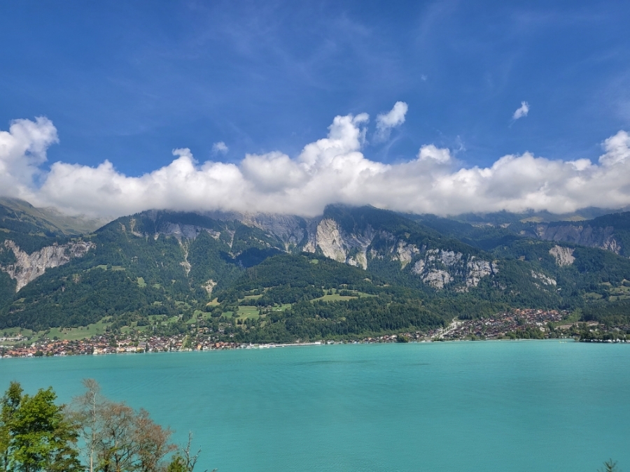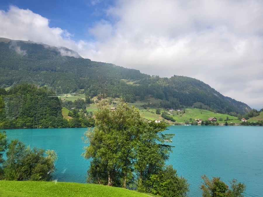 루체른에서 그린델발트로 이동 중 드라마 '사랑의 불시착'에서 현빈이 에머랄드 호수가에서 피아노 치던 장면을 찍은 촬영지인 이젤발트( Iseltwald )를 지나감. 호수 아래 마을이라서 그냥 설명만 듣고 패스...ㅎ