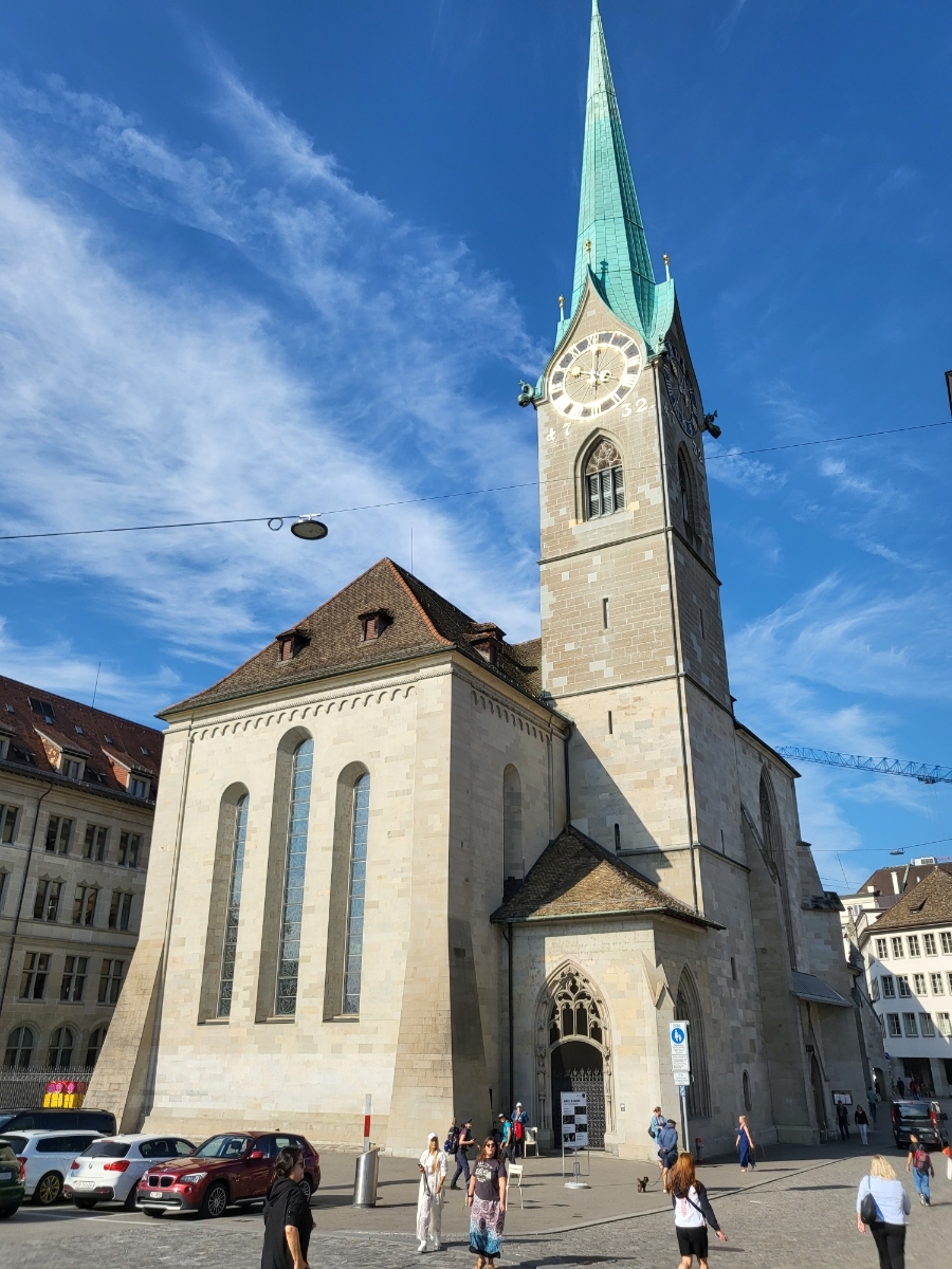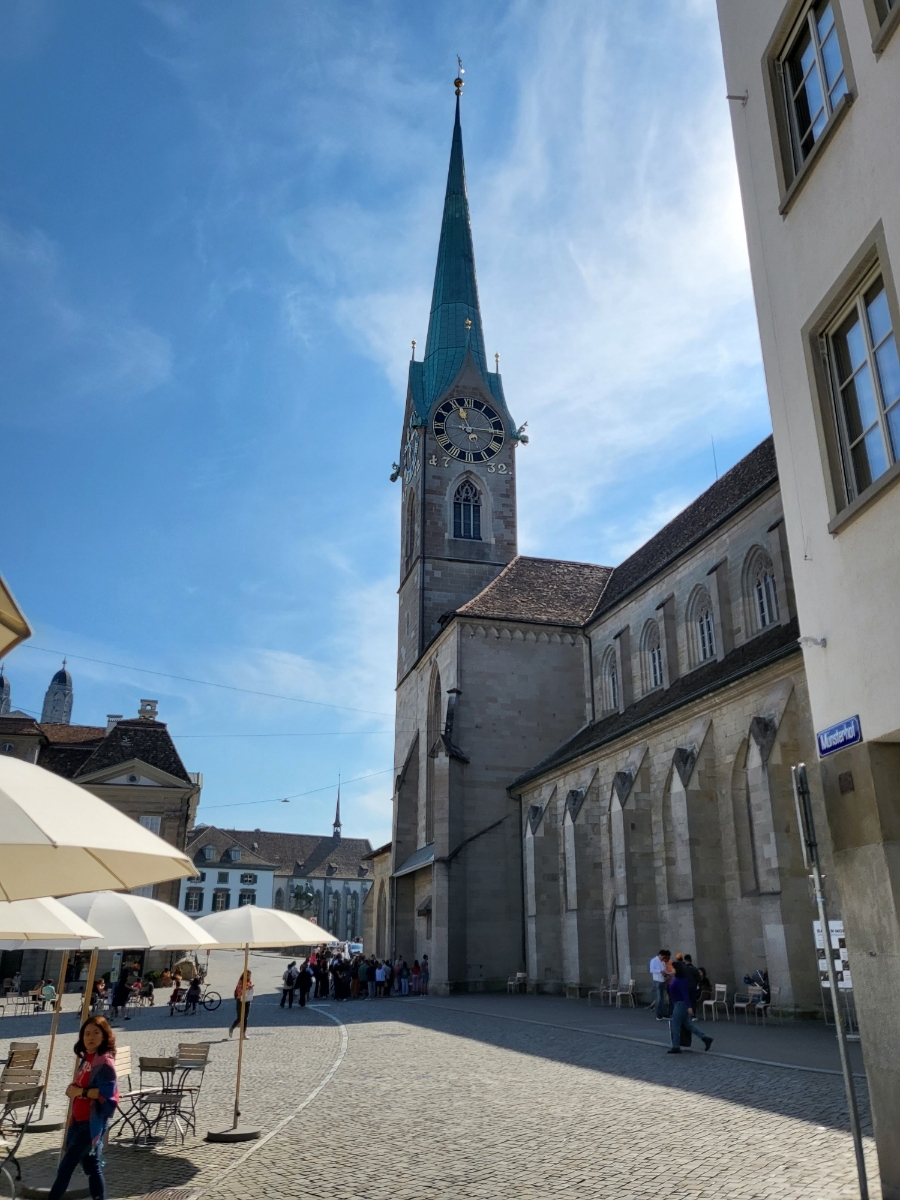 쌍둥이 탑이 상징적인 교회로 종교개혁가인 율리히 츠빙글리가 연설한 곳으로 유명. 쌍동이 탑을 올라갈 수 있음.
