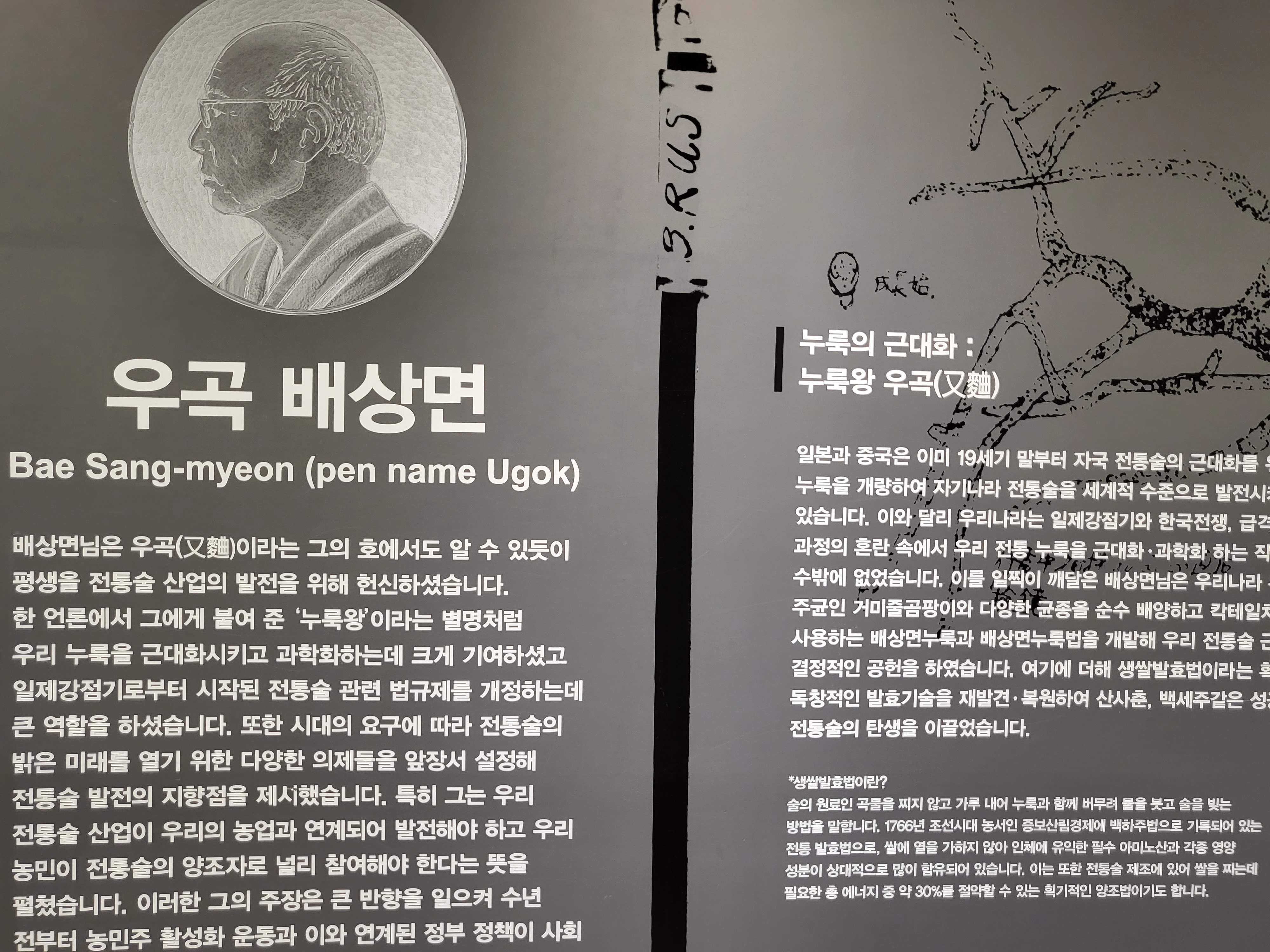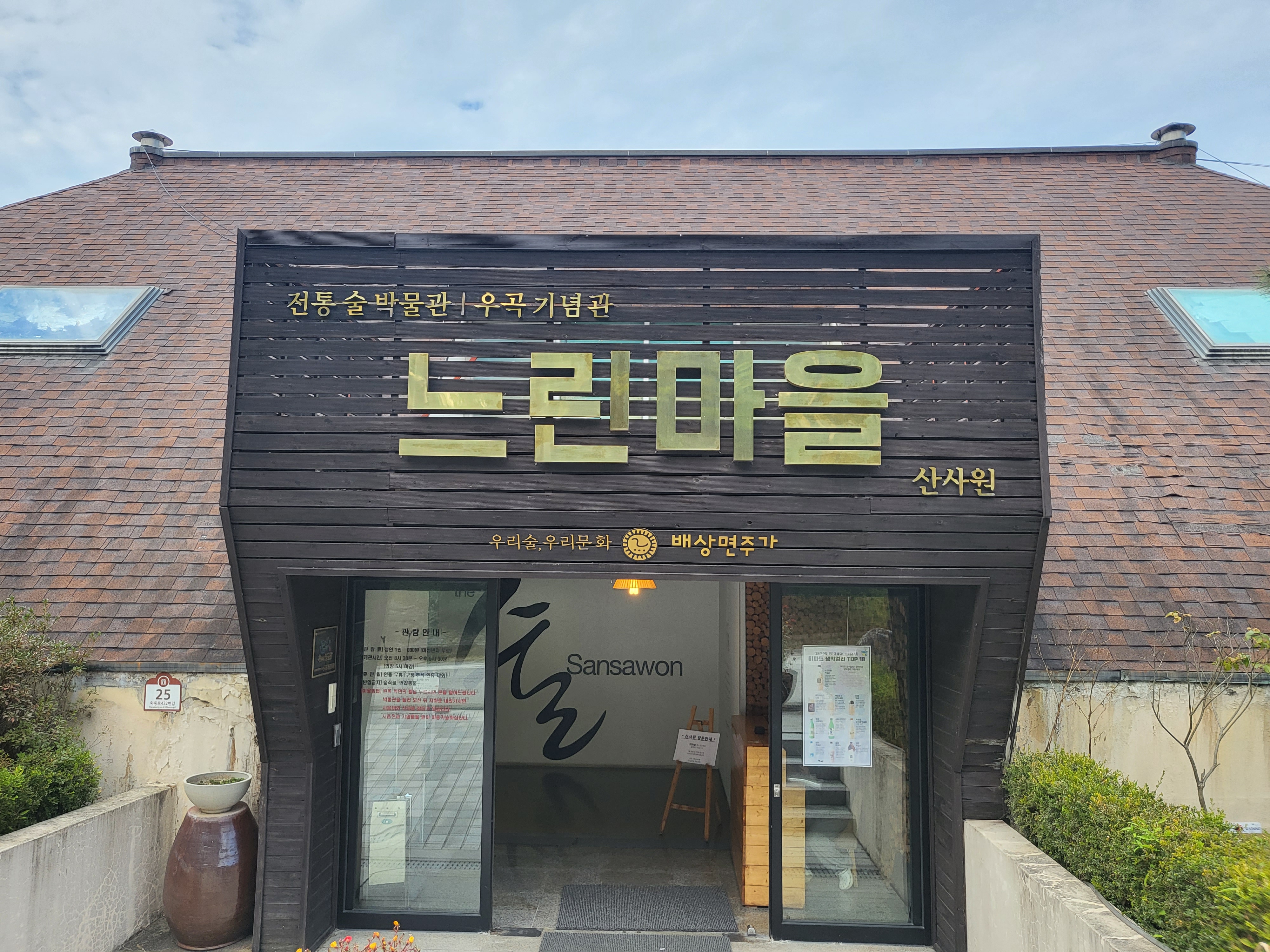 우곡은 배상면주가 창업자인 배상면의 호. 느린마을이 대표술이라서 느린마을 내 산사원이라는 술박물관 운영