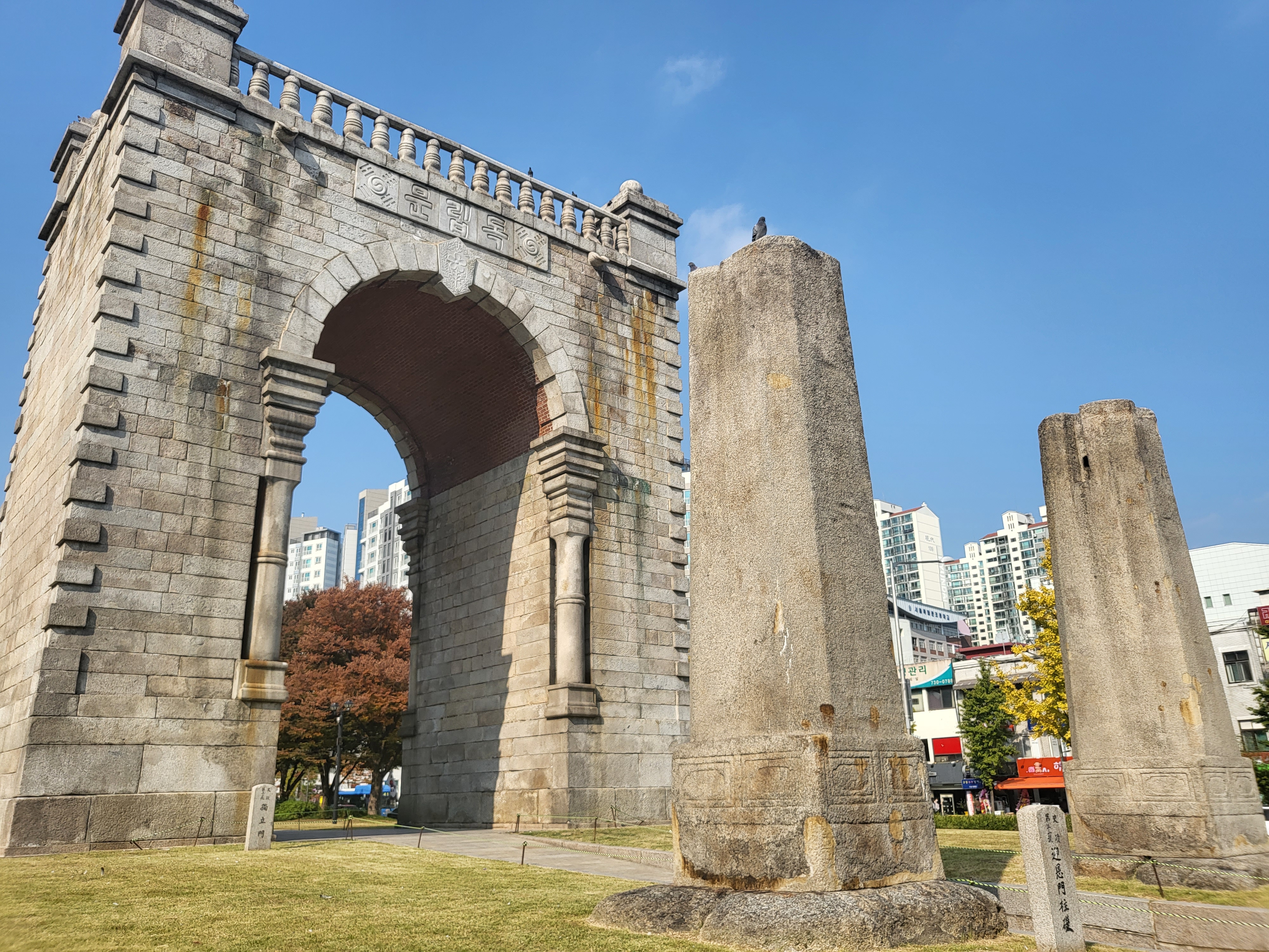 아래 사진 독립문 앞에 옛 영은문 기둥. 독립문을 만들 당시 독립의 의미는 일본이 아니라 중국이었다고 하네요. 하지만 이후 독립의 의미는 일본으로 바뀌죠.
