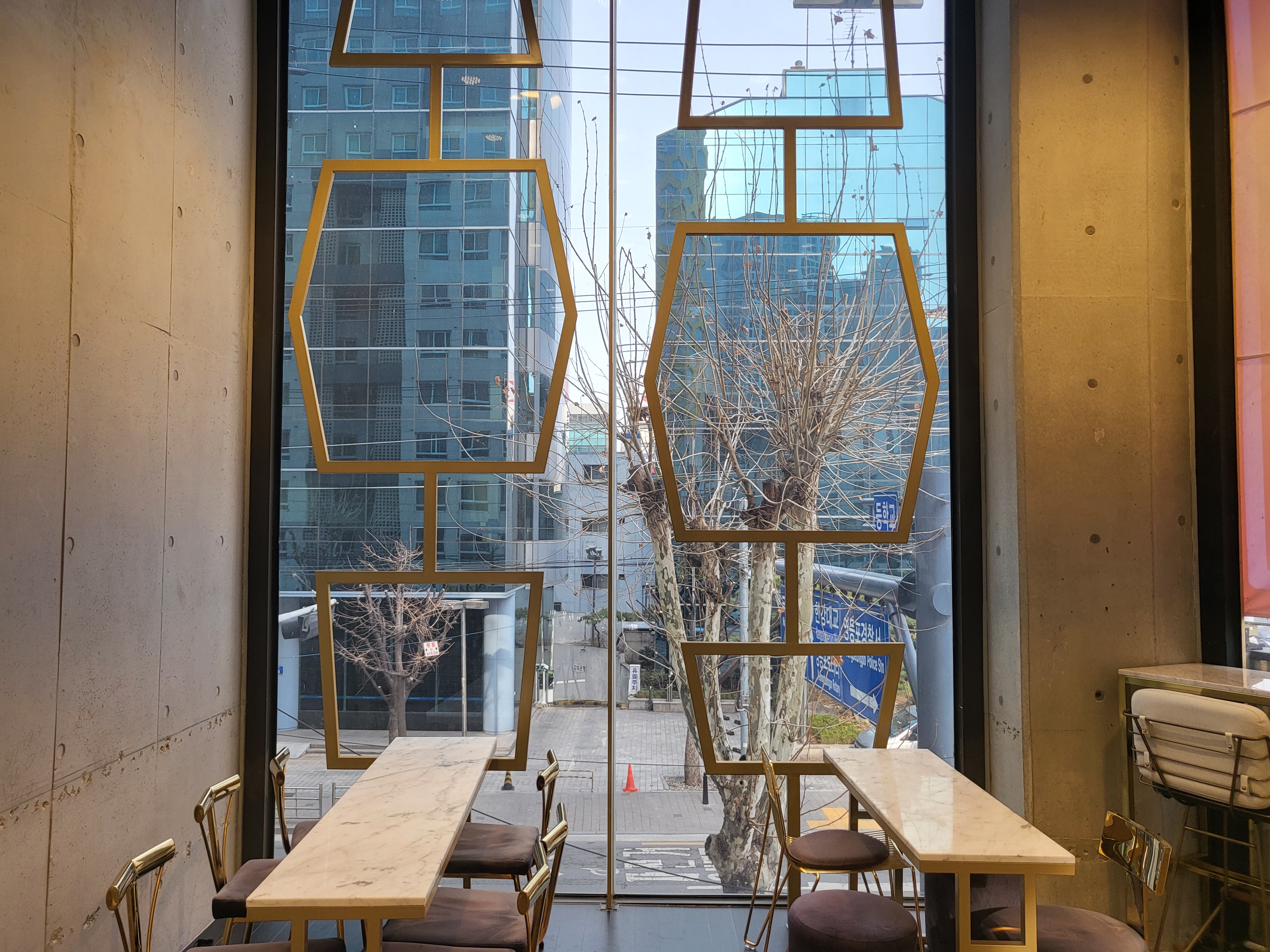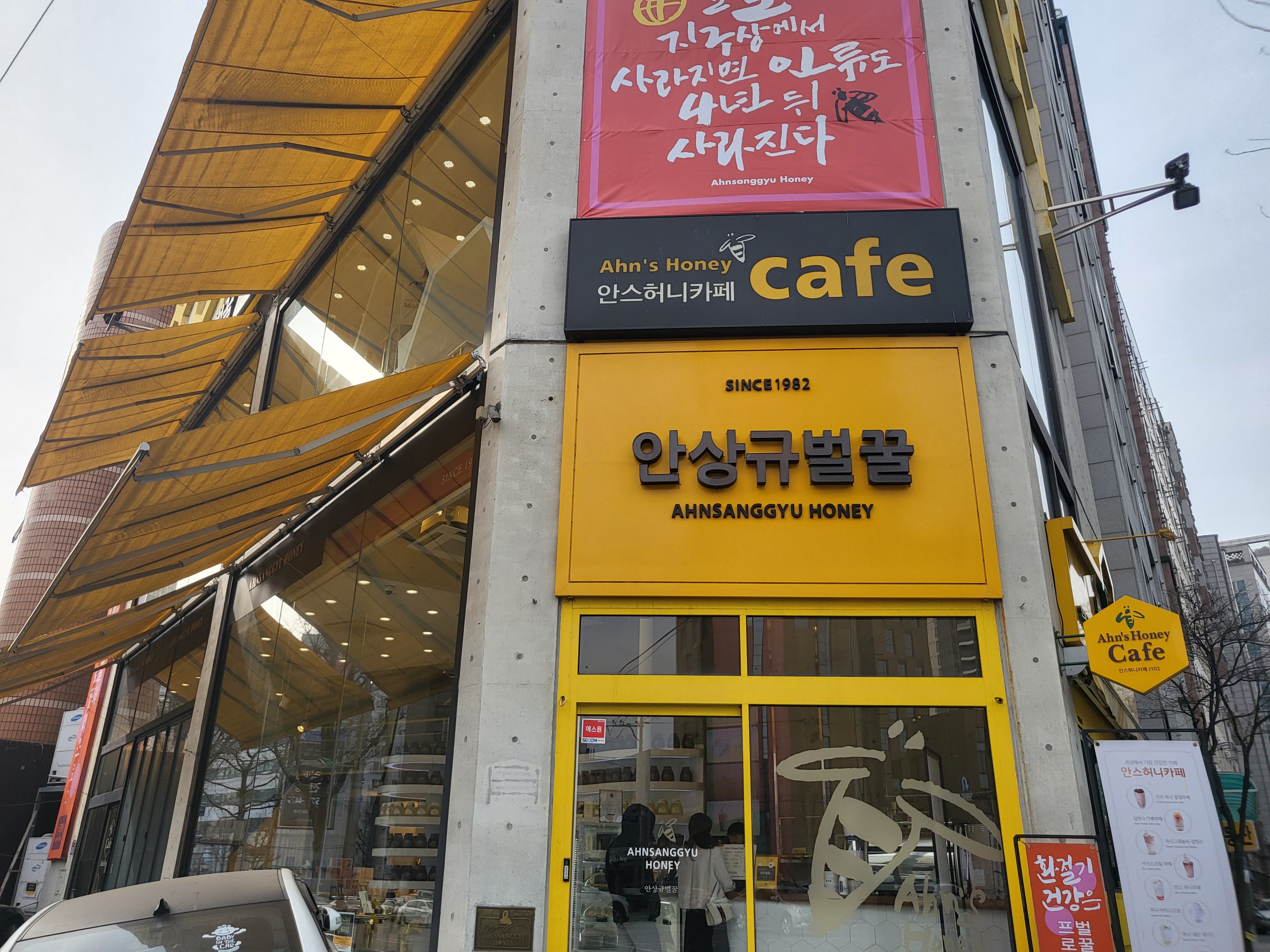 여의도에서 영등포로 넘어가는 곳에 있는 삼각형빌딩 안상규벌꿀 건물 1층에 있는 안스허니카페