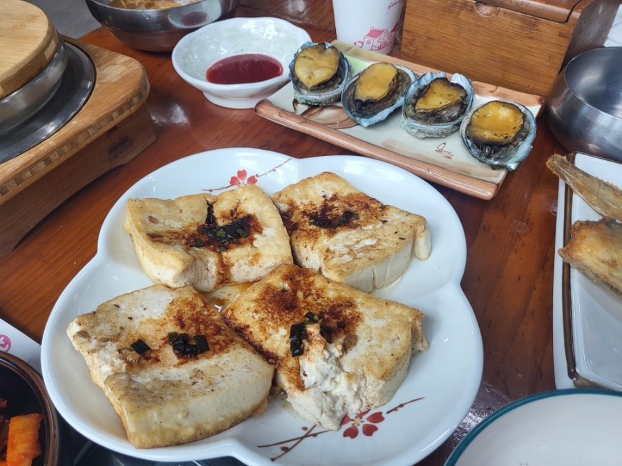 한정식차림 1인당 13,000원인데 돌솥밥, 갈치구이, 제육볶음에 직접 만든 두부까지 줌.