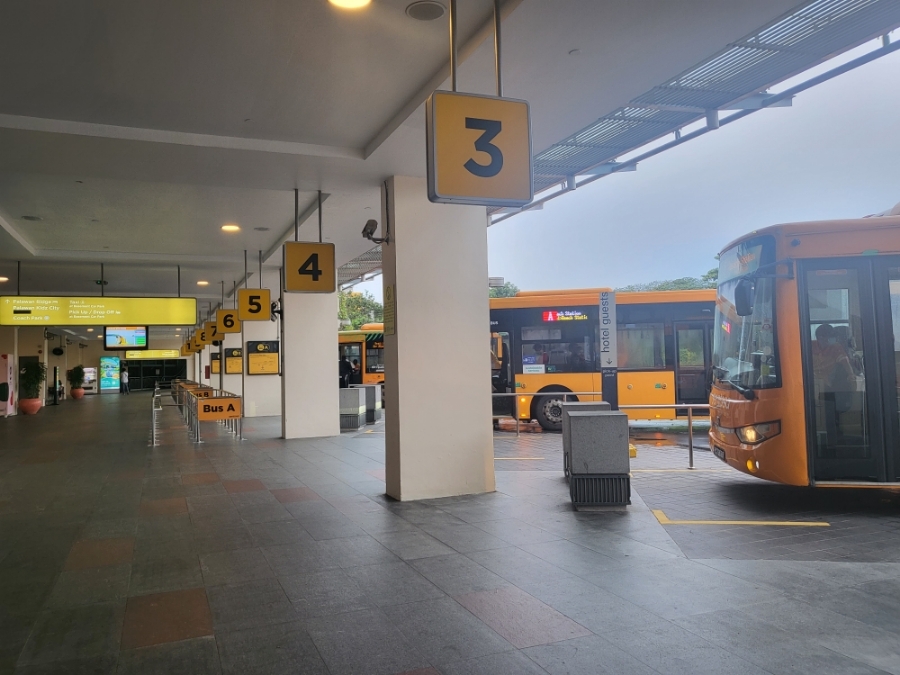 버스 A B C 타는 건너편에 비치셔틀이 있고 비치워크 및 센토사섬 유명 식당인 "트라피자(Trapizza)" 나 "코스테스(Coastes)" 갈 때 타면 됩니다