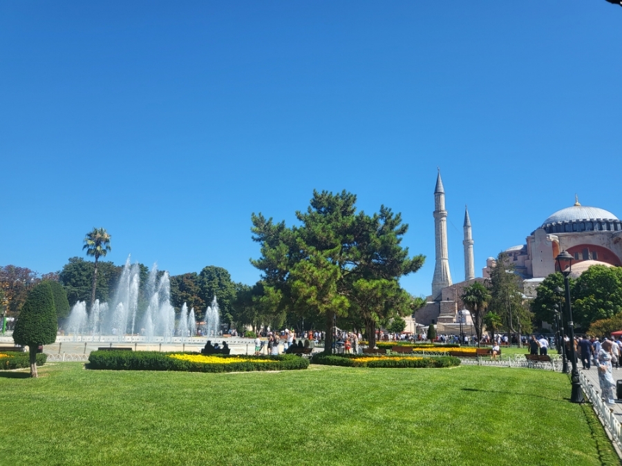 술탄 아흐메트 모스크 정문으로 나오면 바로 아야소피아가 보임