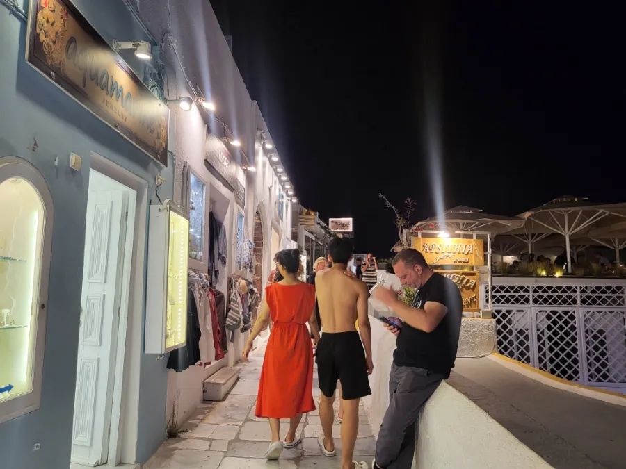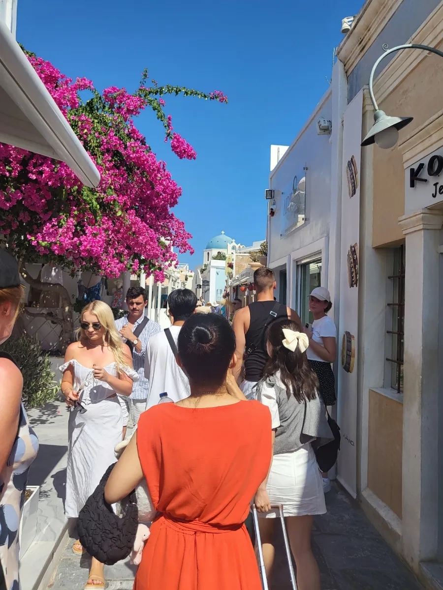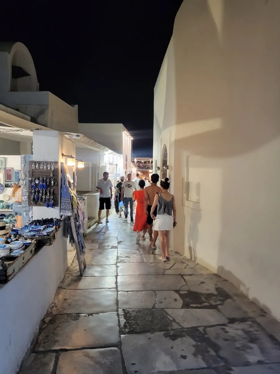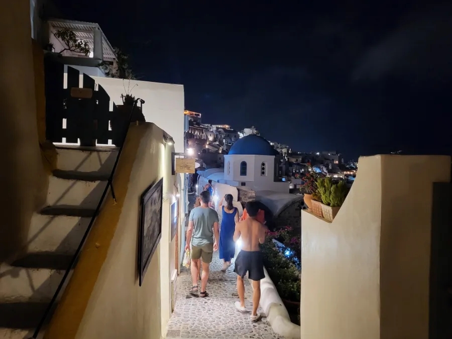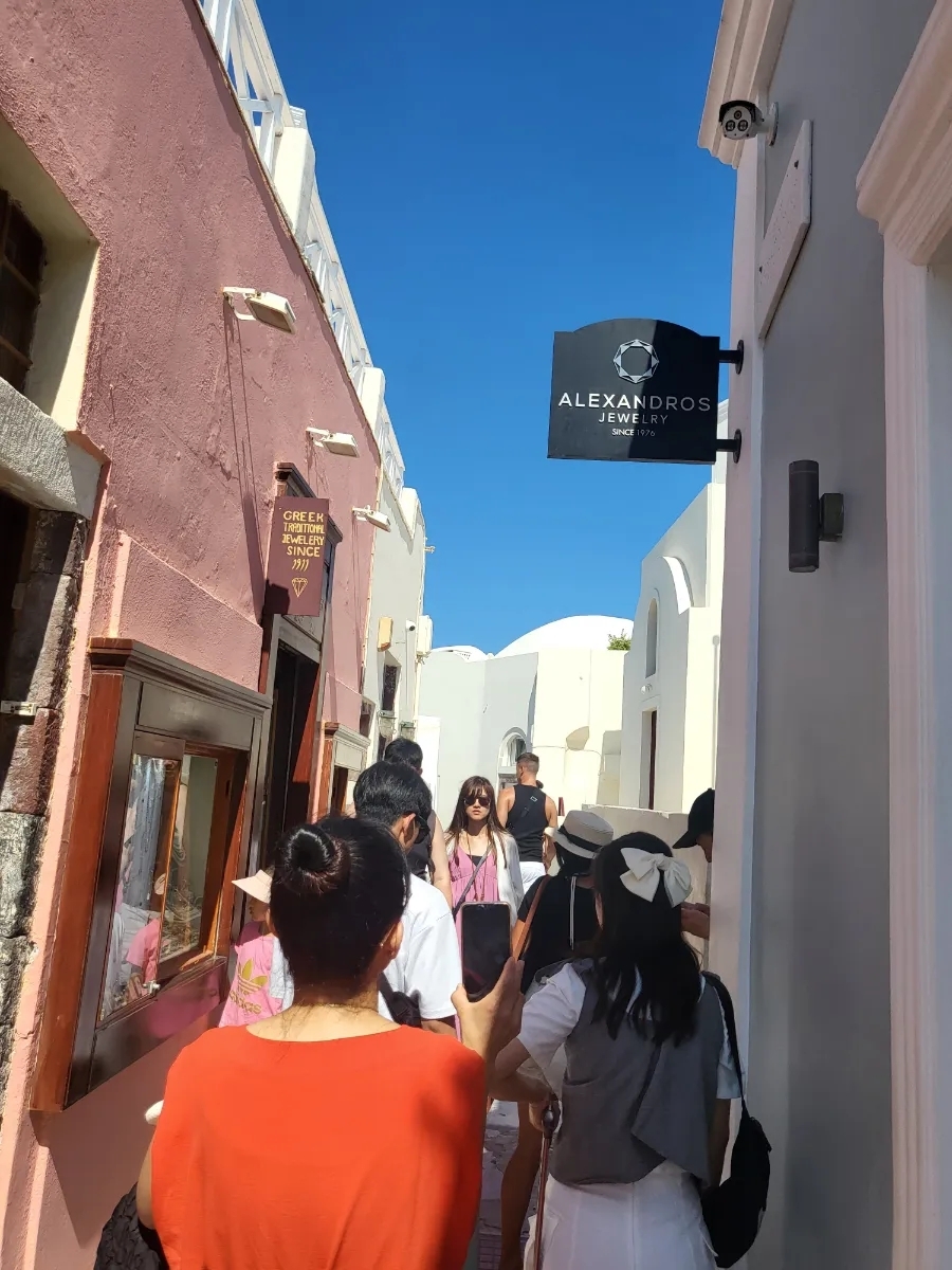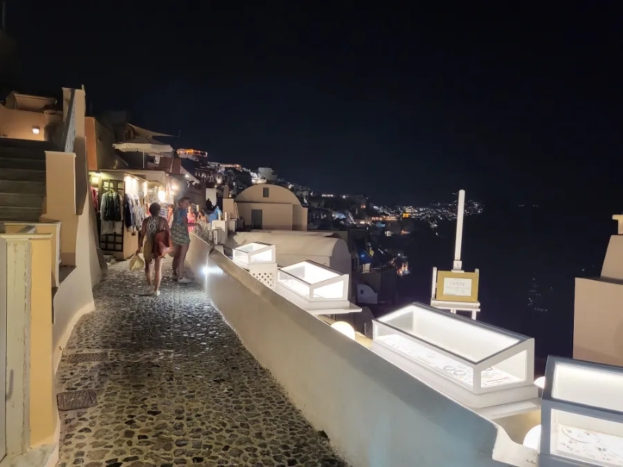 이아마을 메인거리. 메인거리 양쪽으로 기념품 가게와 절벽카페가 있고, 절벽에 위치한 호텔로 내려갈 수 있으며 전체 거리는 약 10~15분이면 통과할 수 있는 거리.(구글맵은 절벽도 같이 표시되어 넓어 보이지만 절벽 제외하고 사람들이 다니는 지역은 이아마을 가운데 부분으로 넓지 않음)