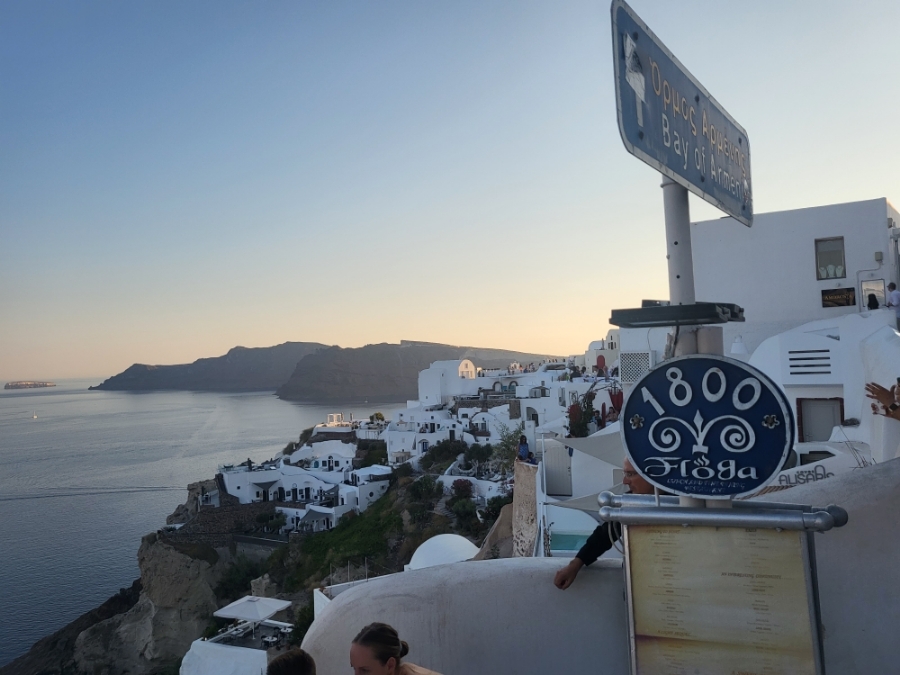 멀리 이아 성채(Oia Castle). 선셋 명소로 7월말에는 8시가 선셋시간이라서 7시 정도부터 사람들로 북적임.