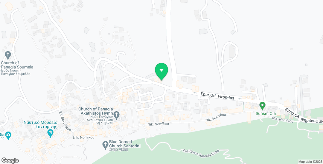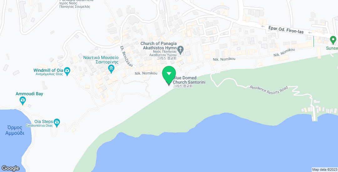 산토리니, 특히 이아마을의 절벽쪽 방향은 구글맵의 정확도가 조금 떨어지므로 주의 필요. 이아마을의 절벽쪽은 구글맵 표시가 제대로 안되지만, 섬쪽으로는 정확하게 표시됨.
