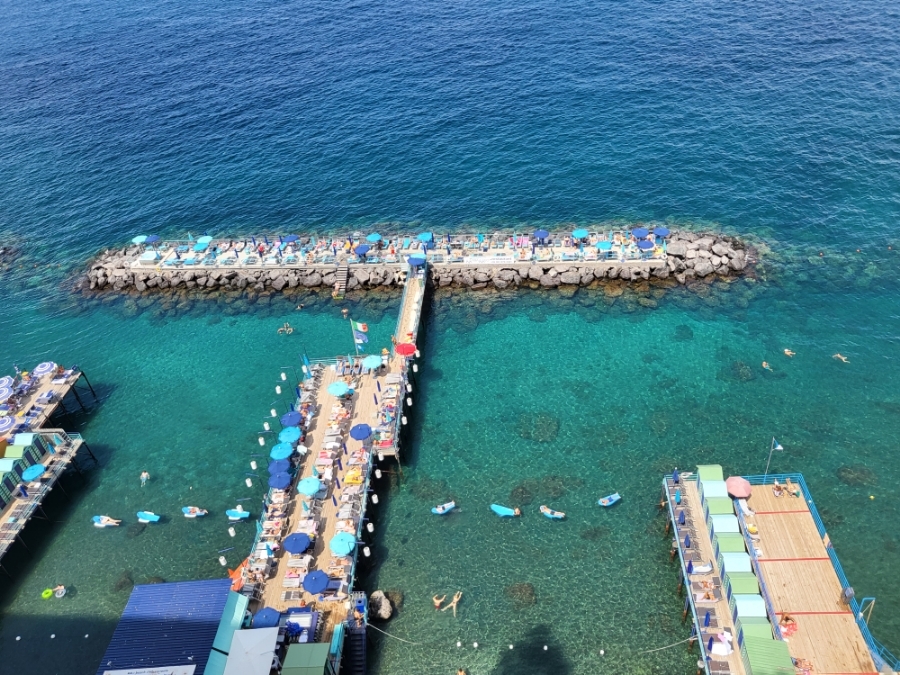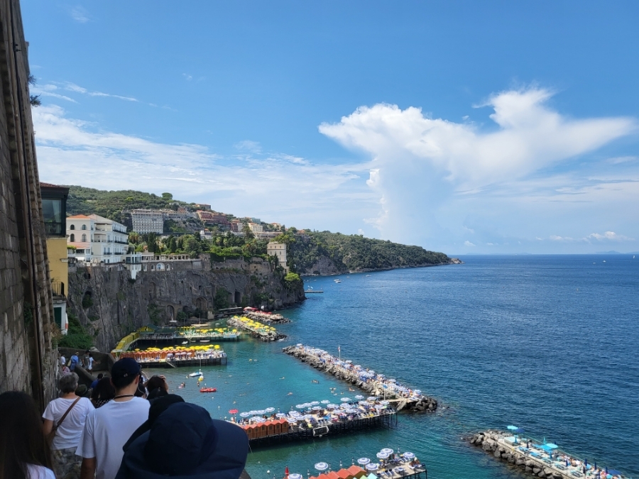 카프리섬으로 가는 배 타기위해 가는 길에 있는 공원에서 바라 본 해변 모습. 쏘렌토시에서 시민들이 무료로 바다를 볼 수 있도록 만든 공원으로 뷰가 정말 좋음.