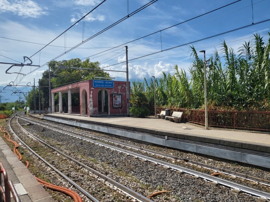 폼페이 남쪽에 위치한 쏘렌토로 이동하기 위해 "나폴리 - 품페이 - 쏘렌토" 전철 탑승'