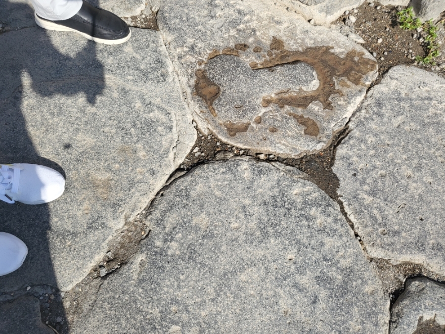 폼페이 유명 장소 중 하나인 유곽, 루파나레(Lupanare)로 가는 표시. 모양이 남성성기 모습.. ㅎ..