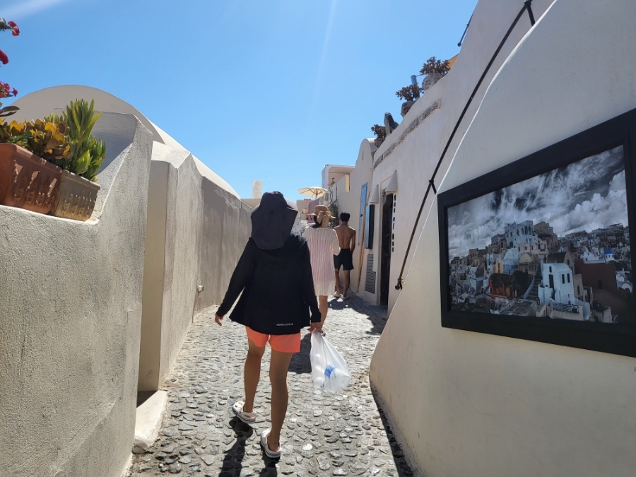 이제 다시 이아마을로 올라가야 하는데, 택시는 인당 5유로, 당나귀는 인당 10유로..의지의 한국인은 소화도 시킬겸 걸어올라가기로..