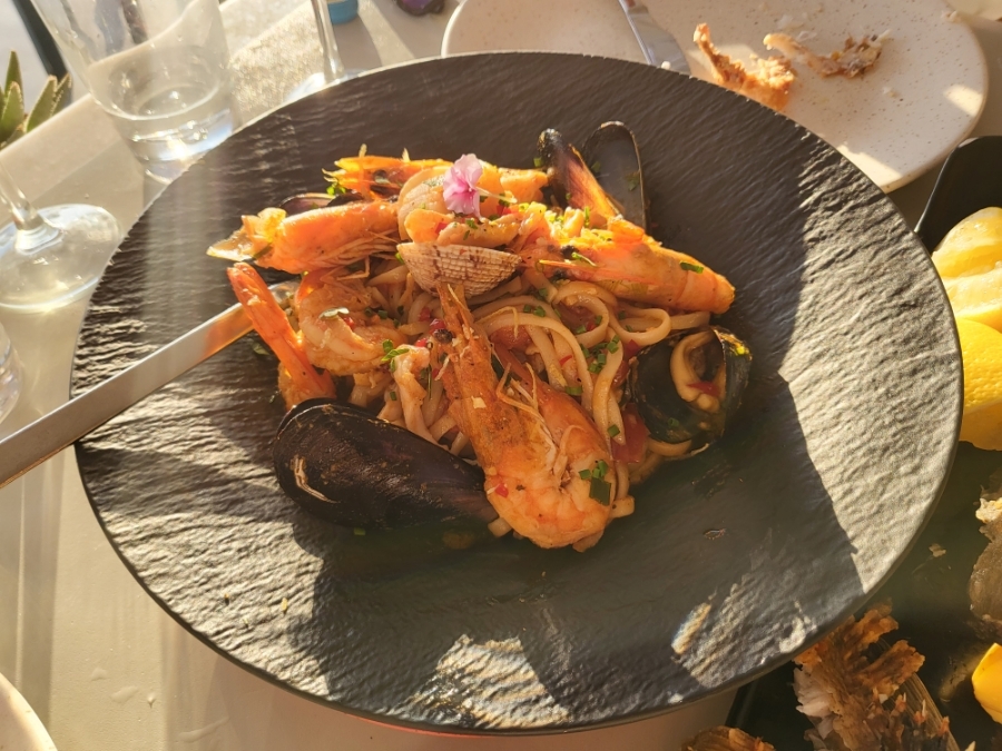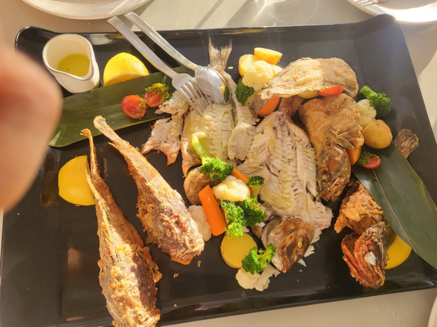 이곳 선셋 식당의 경우 점심식사 시에는 드레스코드가 없으나, 선셋을 보며 식사를 하는 저녁식사의 경우 드레스 코드가 있으니 차려 입고 가야함. 우리는 물놀이 후 옷을 갈아 입지 않고 수영복 차림으로 바로 갔더니 사전 예약했음에도 불구하고 좋은 테이블을 주지 않아 조금 실랑이를 했음. 다만 우리 가족 모두 갈아입을 옷을 가져갔기 때문에 옷을 갈아 입고 바다 가까운 테이블에 착석!