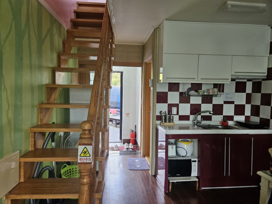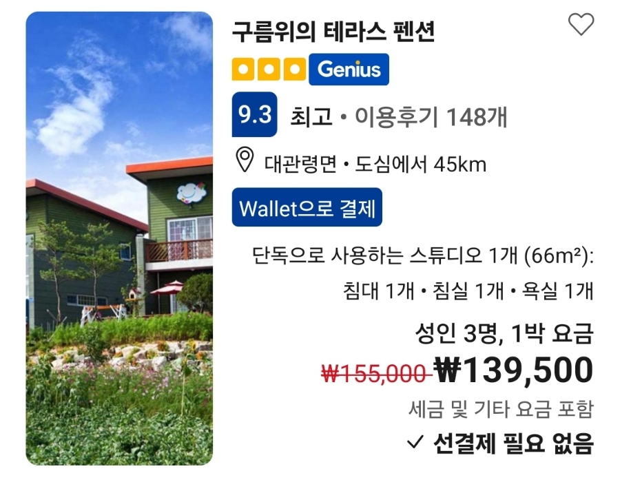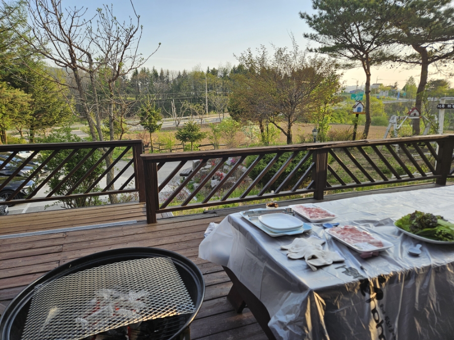 숙소는 테라스에서 고기 구워먹으려고 펜션 잡았고 부킹닷컴 통해 예약한 "구름위의 테라스 펜션"