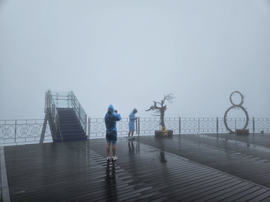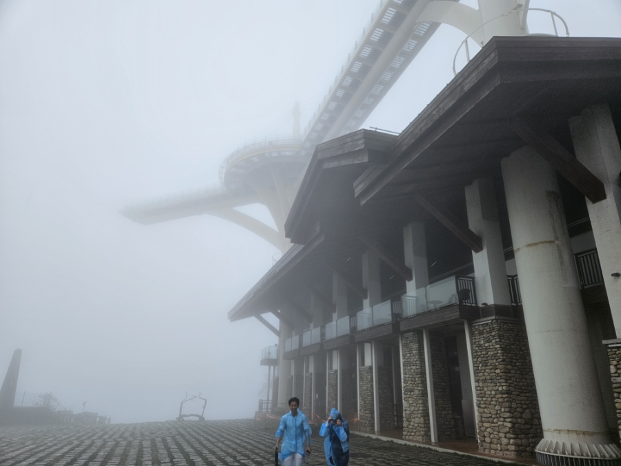 그래도 올라왔으니 비옷 입고 구경..(아무것도 안 보임 ㅠ)
