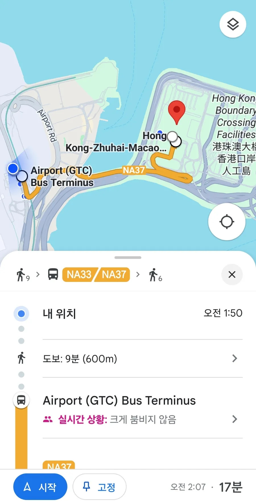 하지만, 비용은 B4 버스가 더 저렴하니 참고. NA37은 HZMB 터미날 지나서 홍콩까지 들어가다 보니 인당 34홍콩달러(약 6천원)으로 상대적으로 비싼 편.