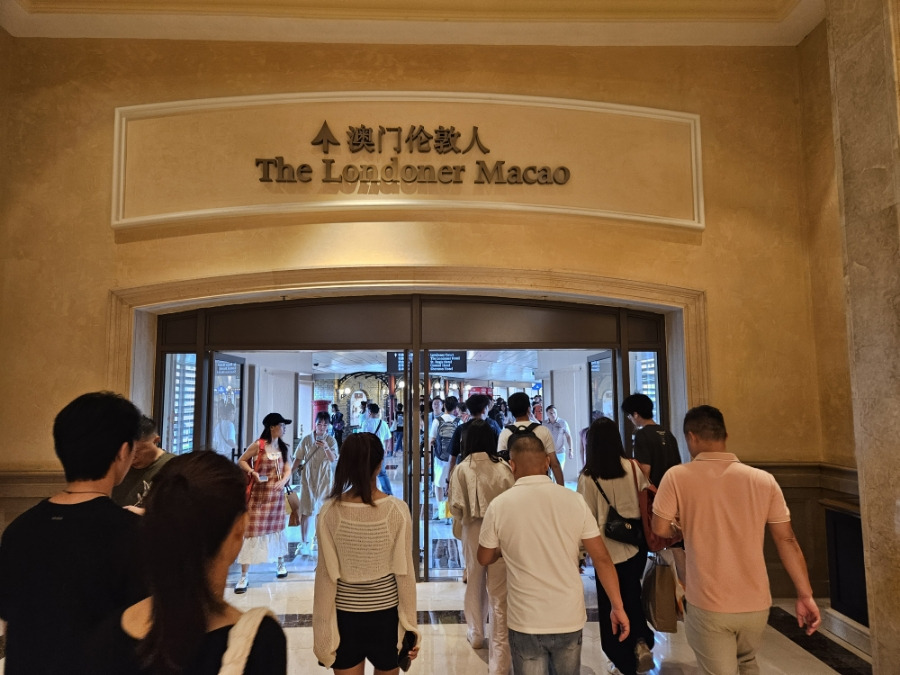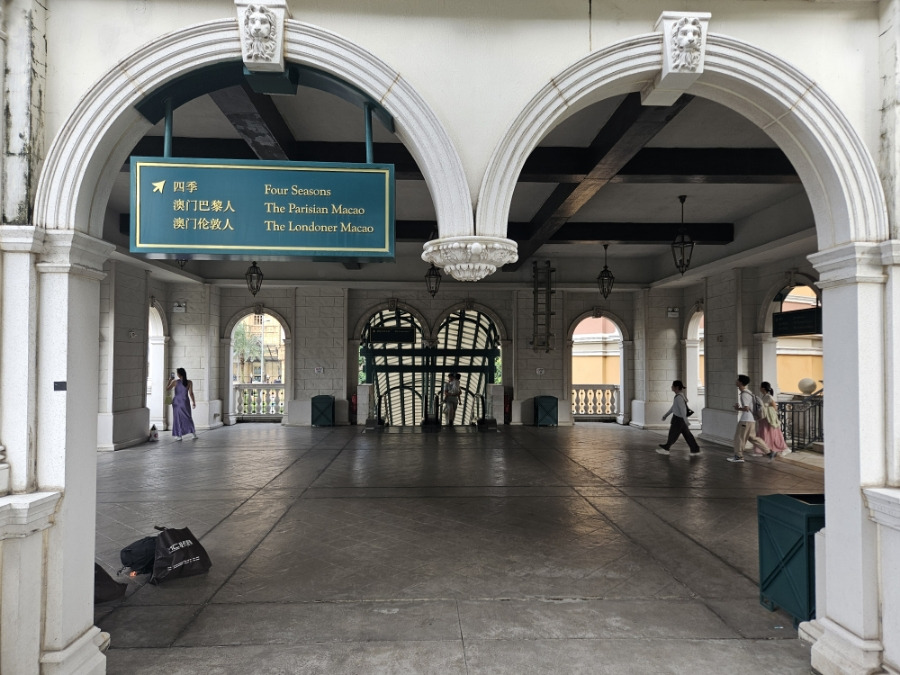 마카오 거의 모든 호텔은 중앙에 카지노가 있고 미성년자는 출입이 불가(가드가 신분증 확인)해서 미성년자 있으면 가운데로 통과 못하고 돌아가야 함. MGM 도 옆 문으로 들어가려다가 아들이 걸려서(?) 못 들어가서 짱나서 그냥 지나치고 윈팰리스로 이동