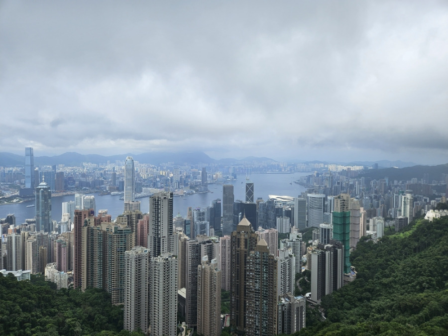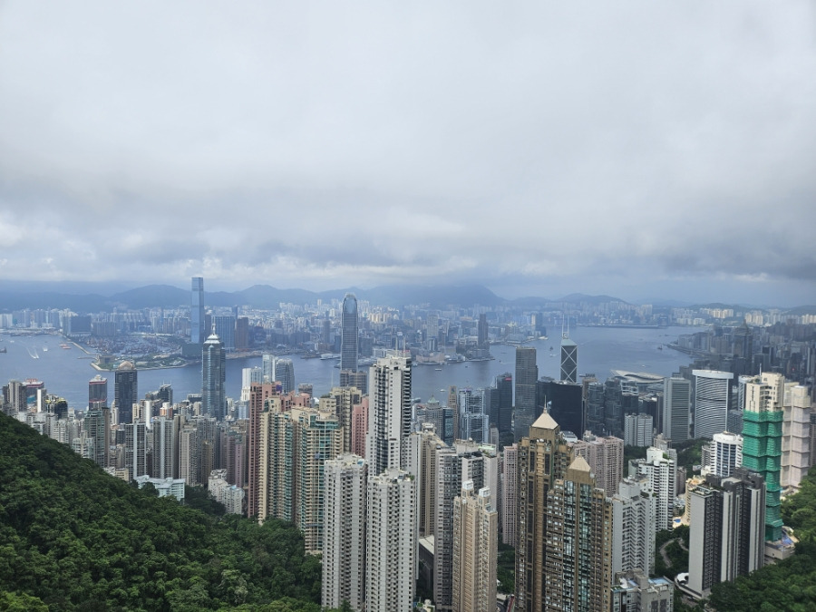 스카이테라스에서 본 홍콩 전경. 멀리 구룡반도 보임.