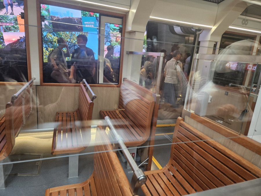 트램 기다리는 중. 앞 자리가 좋긴 한데 앉기 쉽지 않고 아이들도 다 커서 굳이..