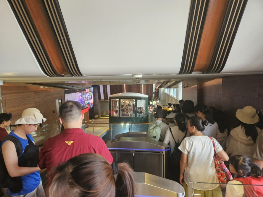 내려가는 트램 타기 위한 대기도 상당히 김.